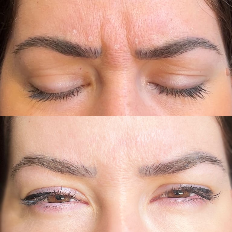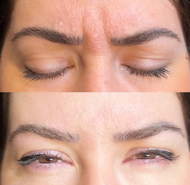 The Glabella region is a surprisingly strong muscle and responsible for pulling your brows together to create a concerned or angry face. When relaxed, if the lines are visible at rest then we can come off as unapproachable or concerned when we aren't! This area can be treated alone, as 1 area and can ultimately create a slight lift, minimising movement and stop those pesky lines from getting worse or it can be treated together with another area. This is a great option if you have hooded eyes.